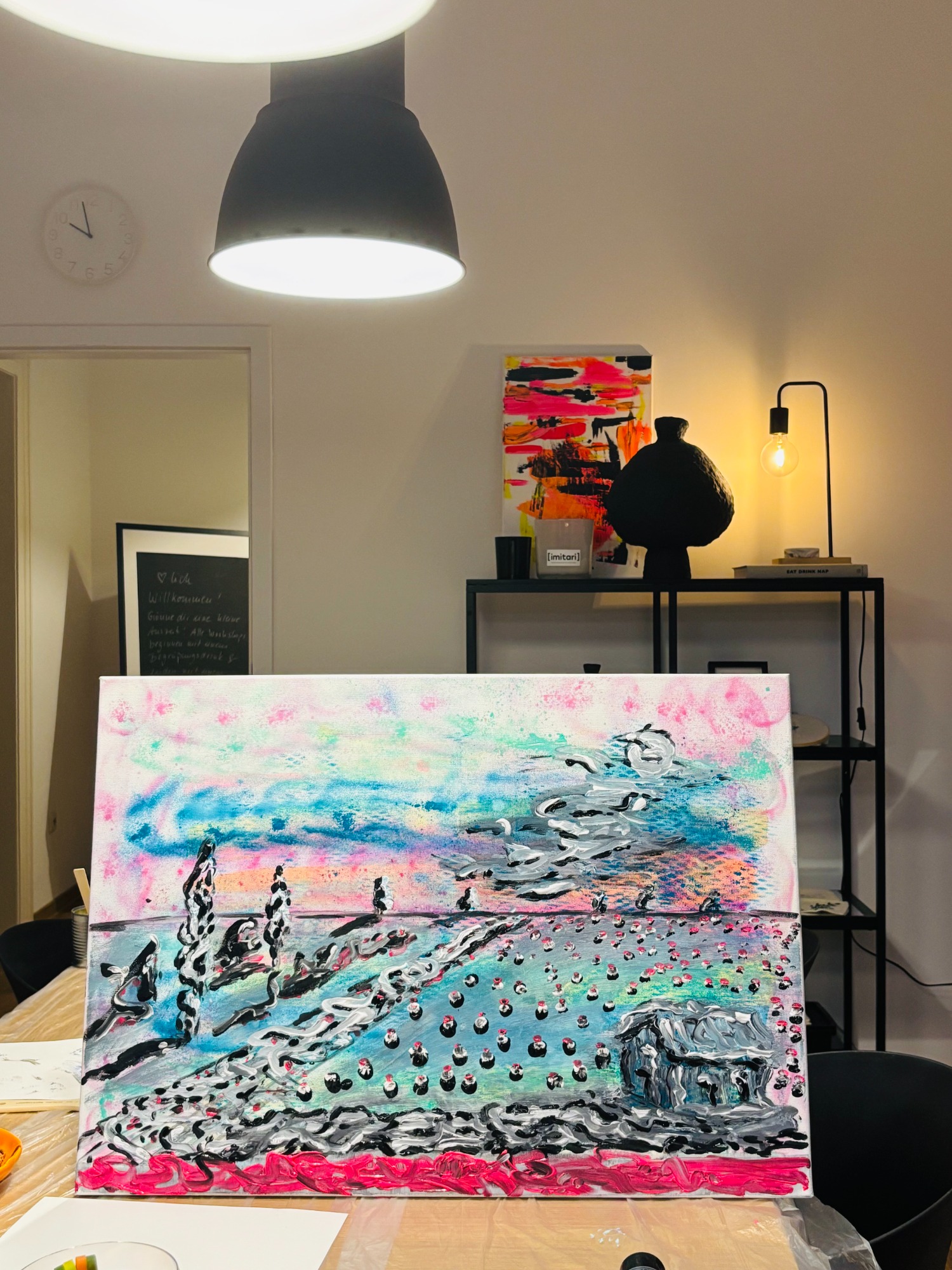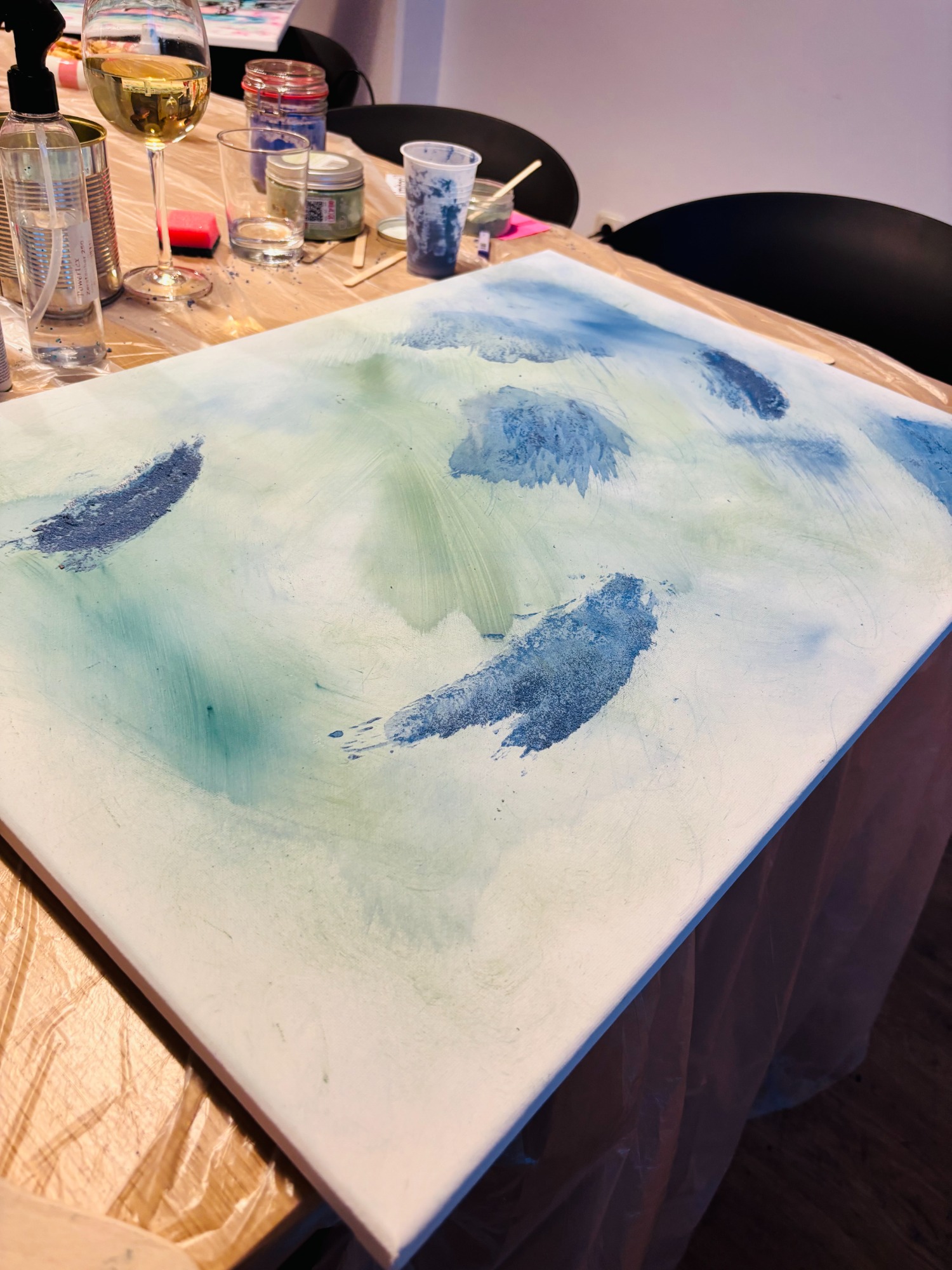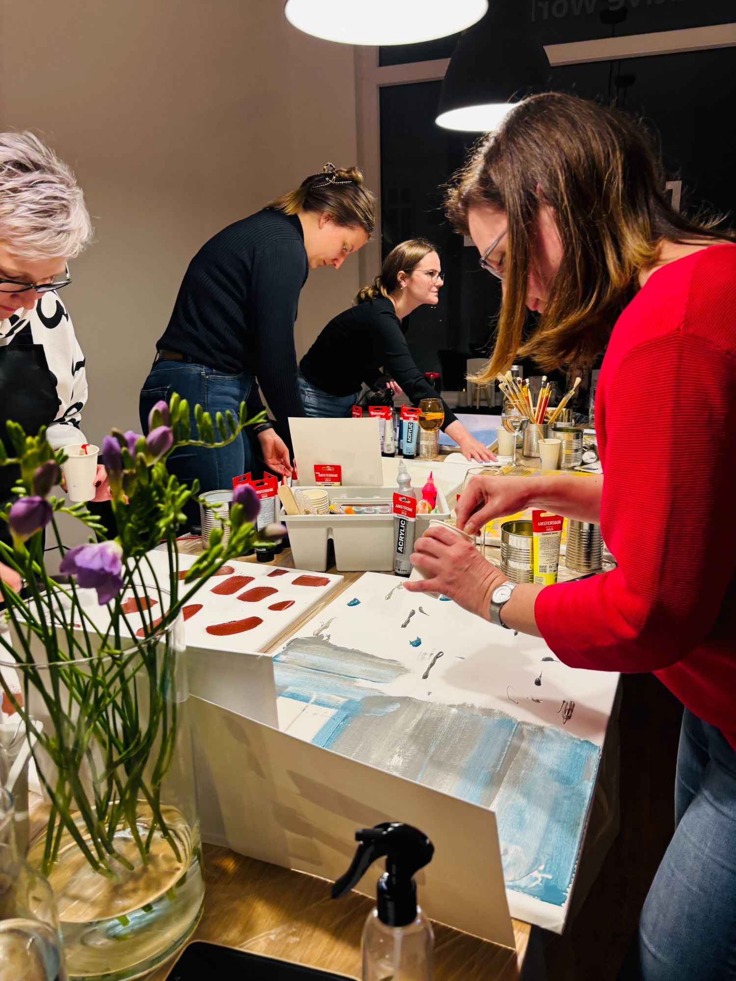 Abstraktes Zeichnen: Gemeinsam starten wir mit einem Gläschen Prosecco (oder zwei) ins Wochenende und lassen unserer Kreativität freien Lauf! Euch erwartet eine entspannte Atmosphäre, eine Leinwand (40cm x 60cm), diverse Farben und Equipment, schöne Gespräche, liebe Menschen, etwas zu knabbern und ganz viel me-time. Nach einer Vorstellung der unterschiedlichen Techniken und verschieden Materialien könnt ihr euch kreativ entfalten.