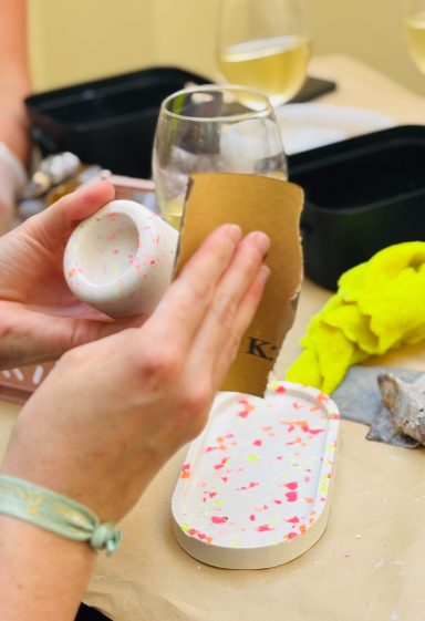 Schon die alten Römer haben diesen wunderbaren Trend geliebt! Danke für diese inspirierende Idee!! Zuerst werden die Farben angemischt, getrocknet, gekrümelt und zu einer individuellen Schale verarbeitet. Am Ende werden die Schalen geschliffen, so dass ihr diese mit nach Hause nehmen könnt.